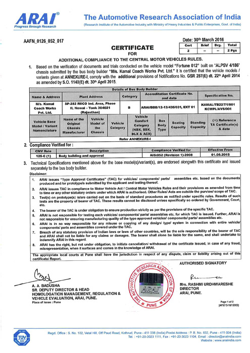 ARAI CERTIFICATE